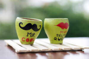 Bored out of all those vintage styled tea cups, here is an idea to give earthen cups a new look. Use acrylic paints on the