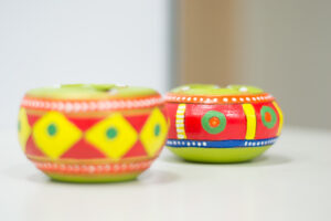 Two small earthen pots painted using acrylic colors, these vibrant colors adds a new life to the pot. Decorated with easy to make patterns. TRY
